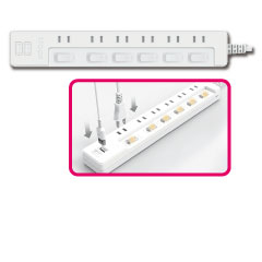 USBゲート搭載節電コンセント 6個口タップ 1.5mTAGS615-WT